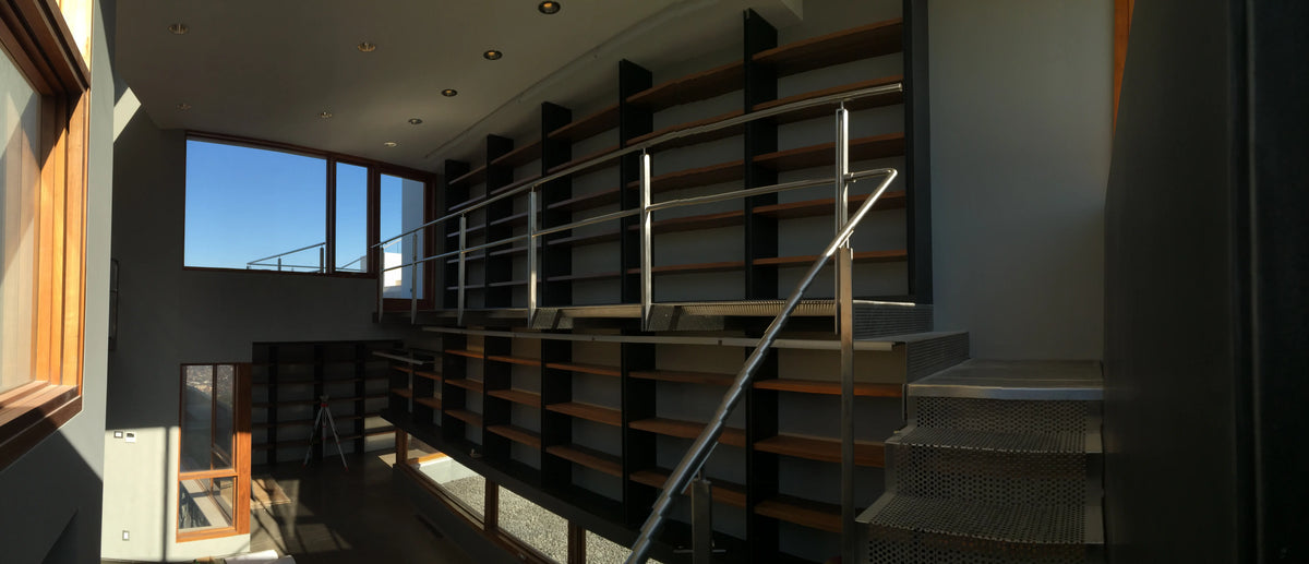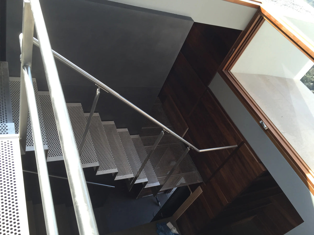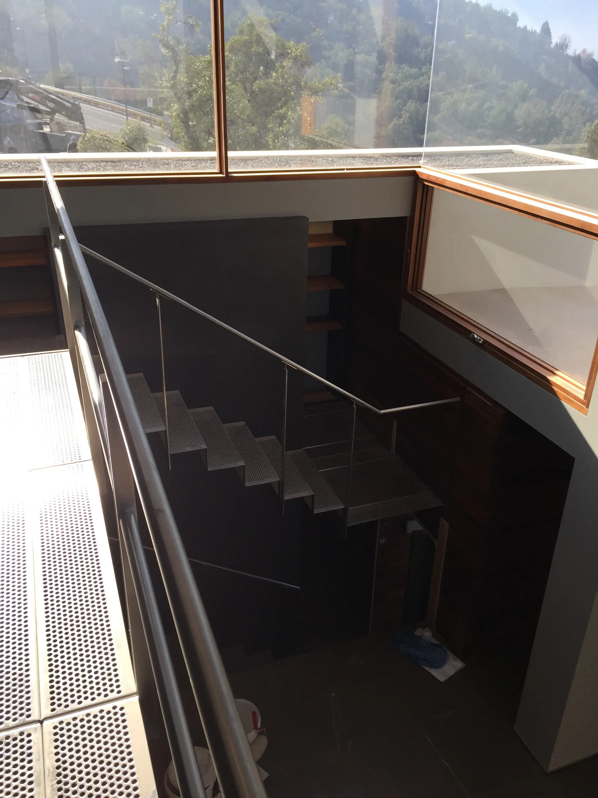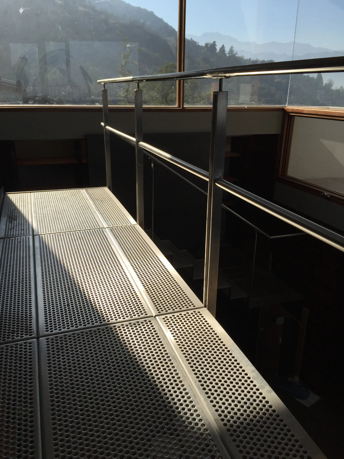 Dulox se involucró en el diseño y la construcción de pasarelas íntegramente fabricadas en acero inoxidables para una exclusiva casa de Santiago. El proyecto consta de vestir la biblioteca de la casa con un sinfín de pasarelas, escaleras, revestimientos y barandales de acero inoxidable. En sí, el proyecto planifica las escalas integras en acero, esto es; estructura, cuerpo y protecciones. Para esto se idean nervaduras en Acero inoxidable de 8 mm perforadas para quitar peso a la estructura y así sustentar los voladizos de la escala.