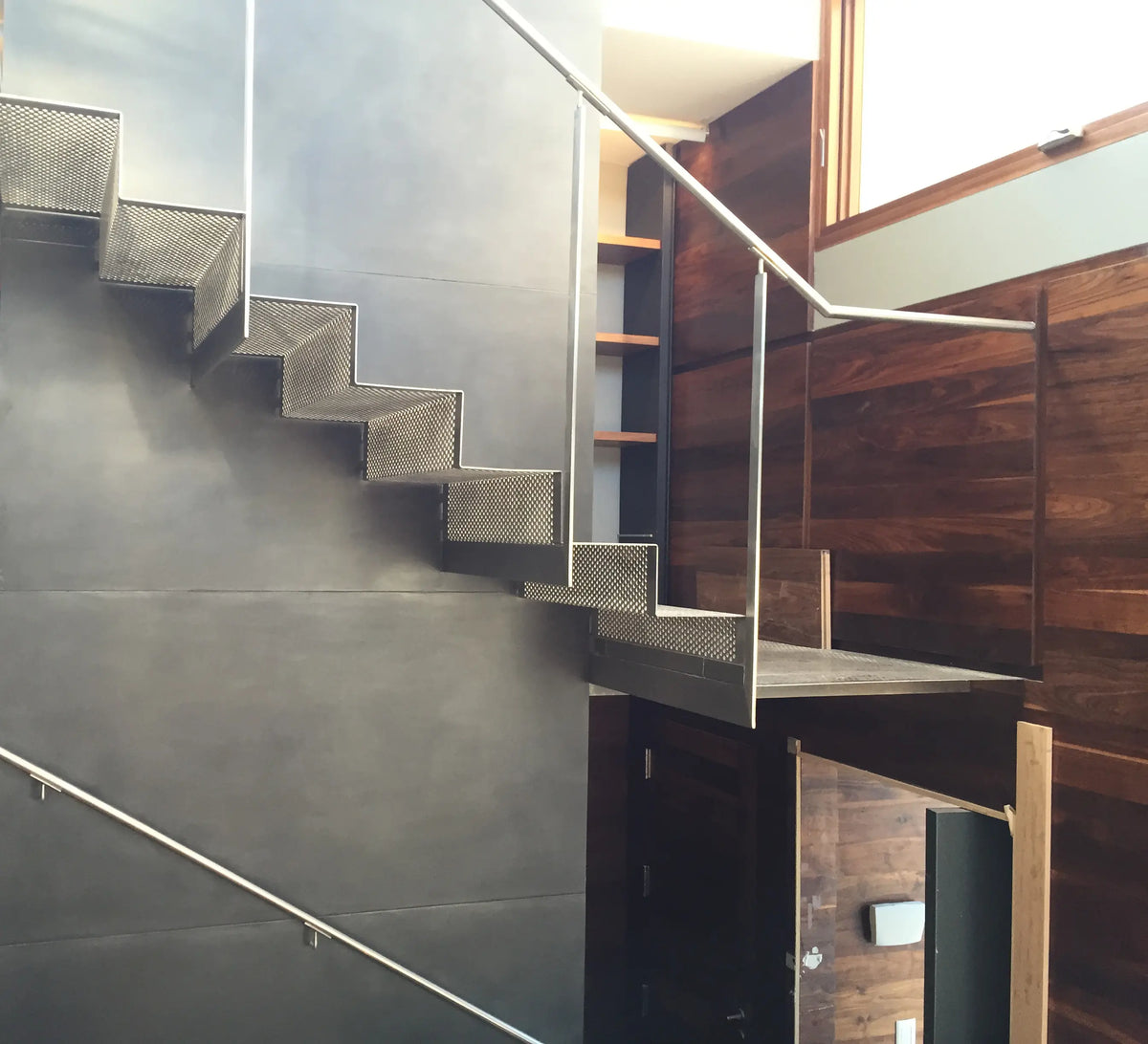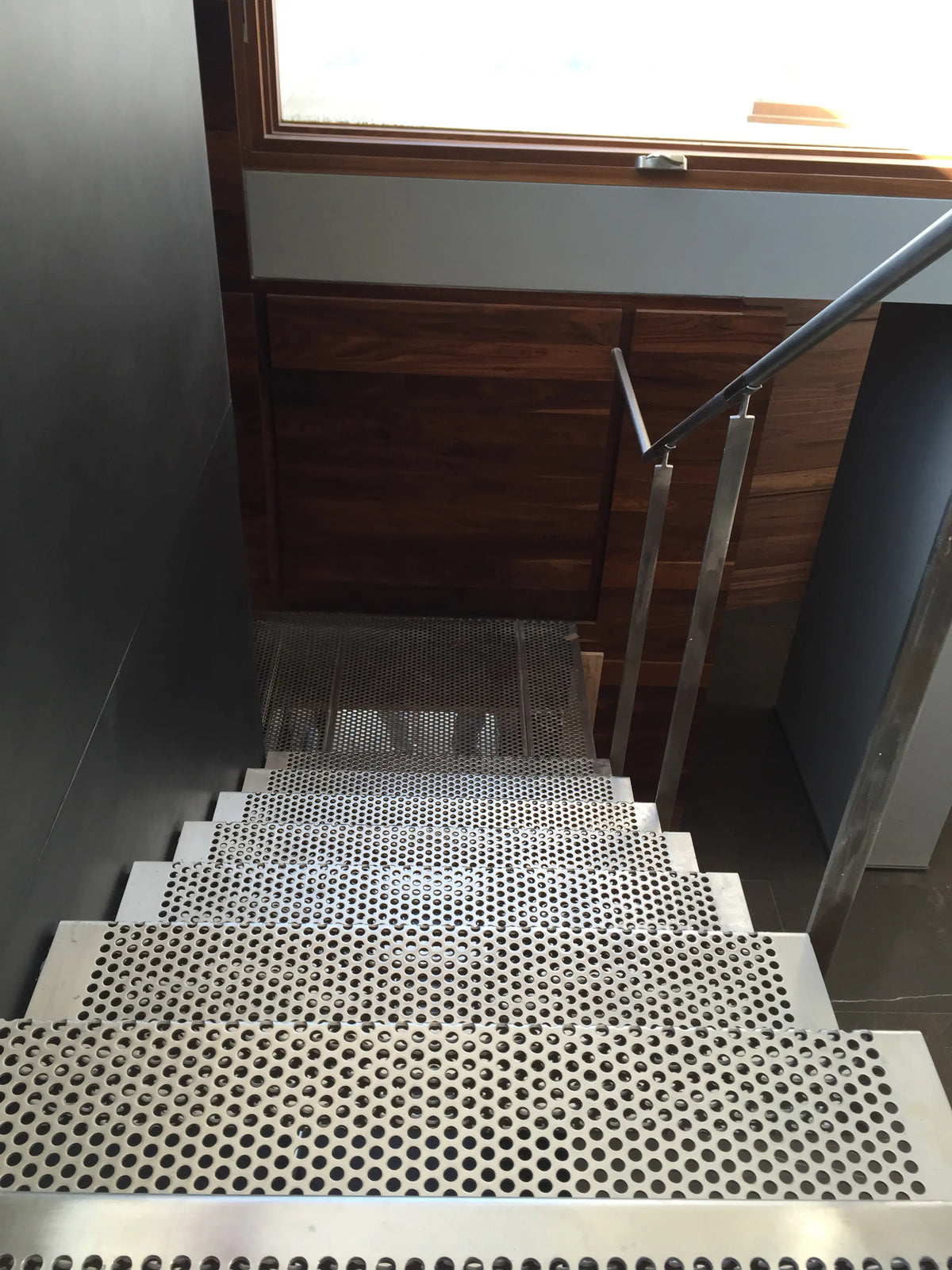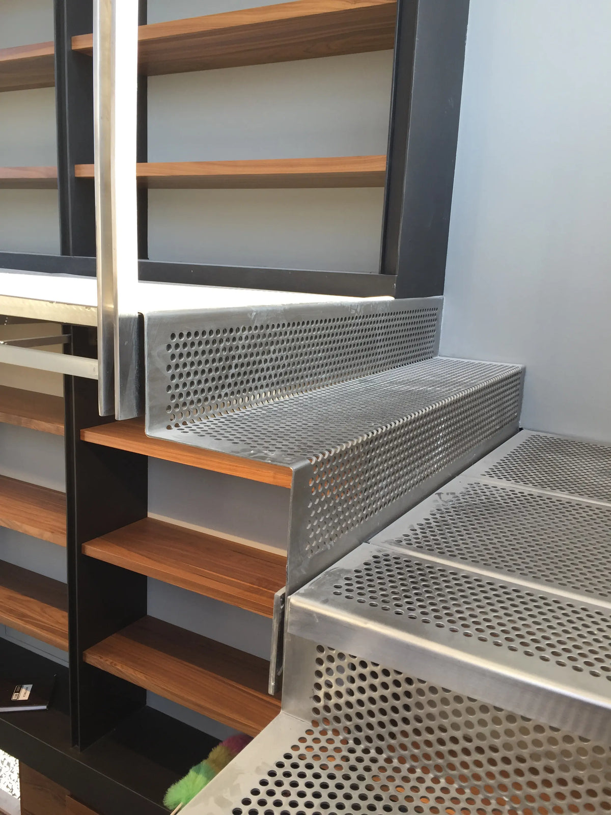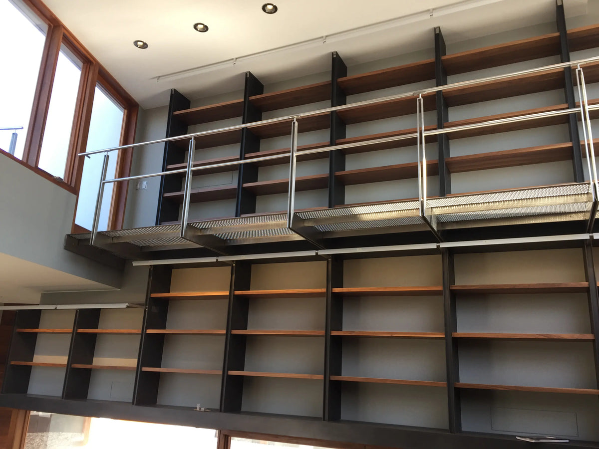 Dulox se involucró en el diseño y la construcción de pasarelas íntegramente fabricadas en acero inoxidables para una exclusiva casa de Santiago. El proyecto consta de vestir la biblioteca de la casa con un sinfín de pasarelas, escaleras, revestimientos y barandales de acero inoxidable. En sí, el proyecto planifica las escalas integras en acero, esto es; estructura, cuerpo y protecciones. Para esto se idean nervaduras en Acero inoxidable de 8 mm perforadas para quitar peso a la estructura y así sustentar los voladizos de la escala.