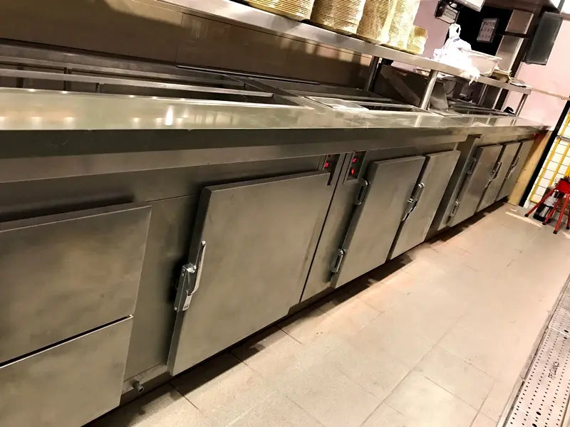 Mobiliario Gastronómico y Equipamiento de el nuevo PF Chang's Mirador Alto Las Condes. Proyecto integral con lineas de frío alimentadas remotamente, ademas de equipamiento especial en todo el restaurant. Campana inyectada de 9.5 metros lineales y Cocina abierta a publico.Sin lugar a dudas un proyecto excepcional Dulox