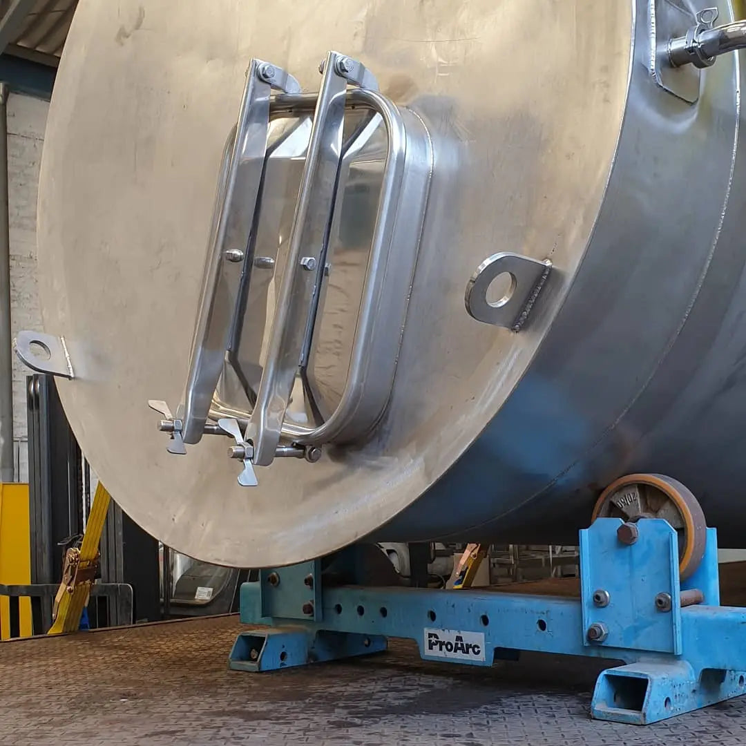 DULOX desarrollo un estanque de Acero Inoxidable para almacenar aceite, capacidad para 5000 Ltrs útiles, fabricado íntegramente en acero inoxidable calidad AISI 304-L en mm de espesor, con dos tapas hombre, sistema para vaciado de 3" de diámetro, sistema de llenado de 1 1/2" y sistema para indicar nivel de 1.