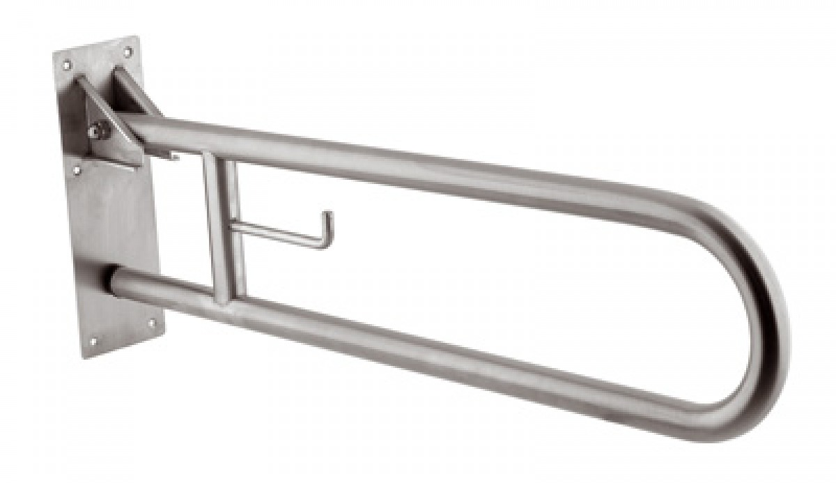 BARRA DE ABATIBLE DE 1 ¼” Ø • PLETINA DE 1.2MM PARA ANCLAR A MURO CON 4 ORIFICIOS DE 6MM Ø • FABRICADO ÍNTEGRAMENTE EN ACERO INOXIDABLE CALIDAD AISI 304-L