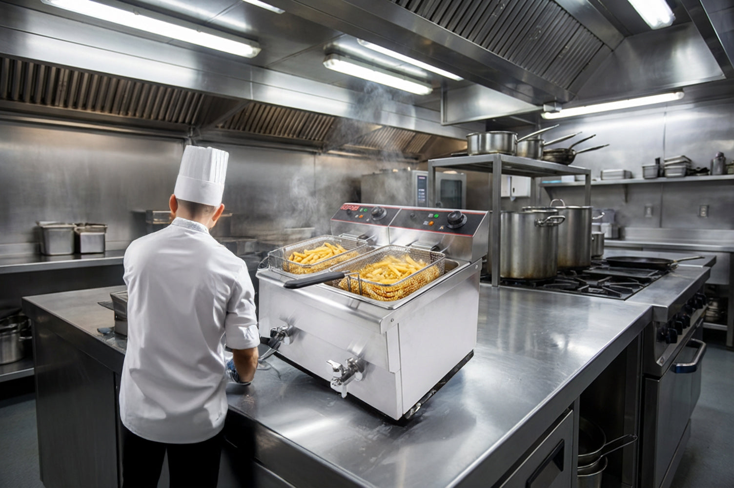 Resistencia y eficiencia en tu cocina: nuestra Freidora Eléctrica doble de 24 litros está fabricada en acero inoxidable AISI 304-L, garantizando durabilidad y alto desempeño. Su sistema eléctrico de alta potencia es una elección confiable para cocinas de alta exigencia.