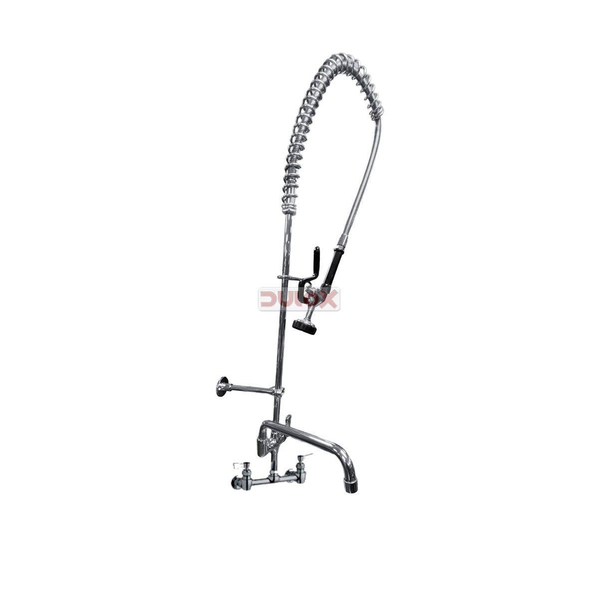MANGUERA DE PRE-LAVADO PARA FIJAR A CUBIERTA. INCLUYE VÁLVULA DE CERÁMICA DE ¼ DE VUELTA. TUBO VERTICAL DE 24 (610MM). INCLUYE CUELLO CISNE DE 310MM DE LARGO.MANGUERA FLEXIBLE DE 44 (1.12MM) VÁLVULA DE PULVERIZACIÓN. SOPORTE DE PARED DE 7 (178MM). DISTANCIA ENTRE EJES DE 200MM. REGADERA ROCIADORA AHORRADORA DE AGUA. INDICADORES DE AGUA FRÍA Y CALIENTE