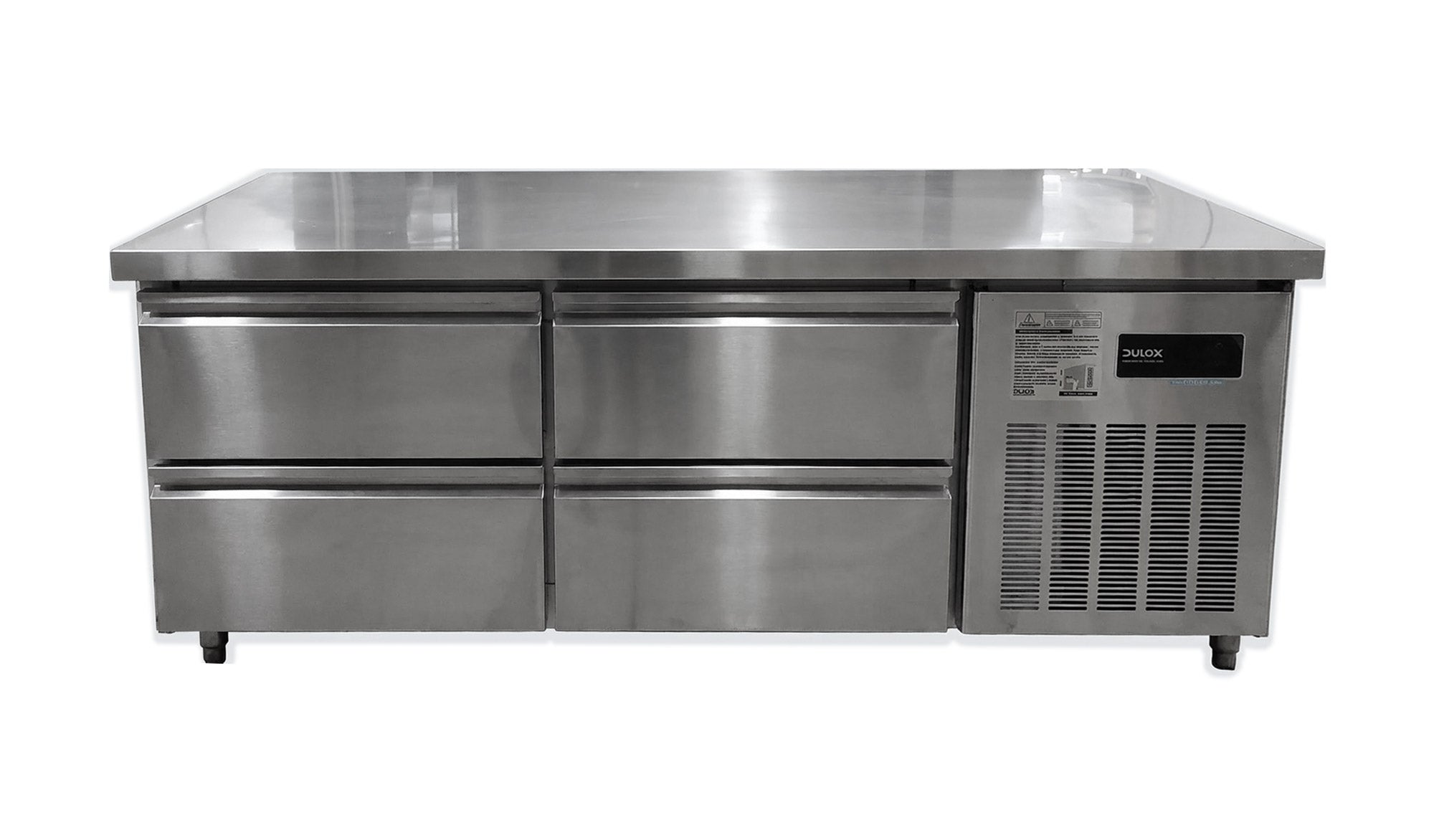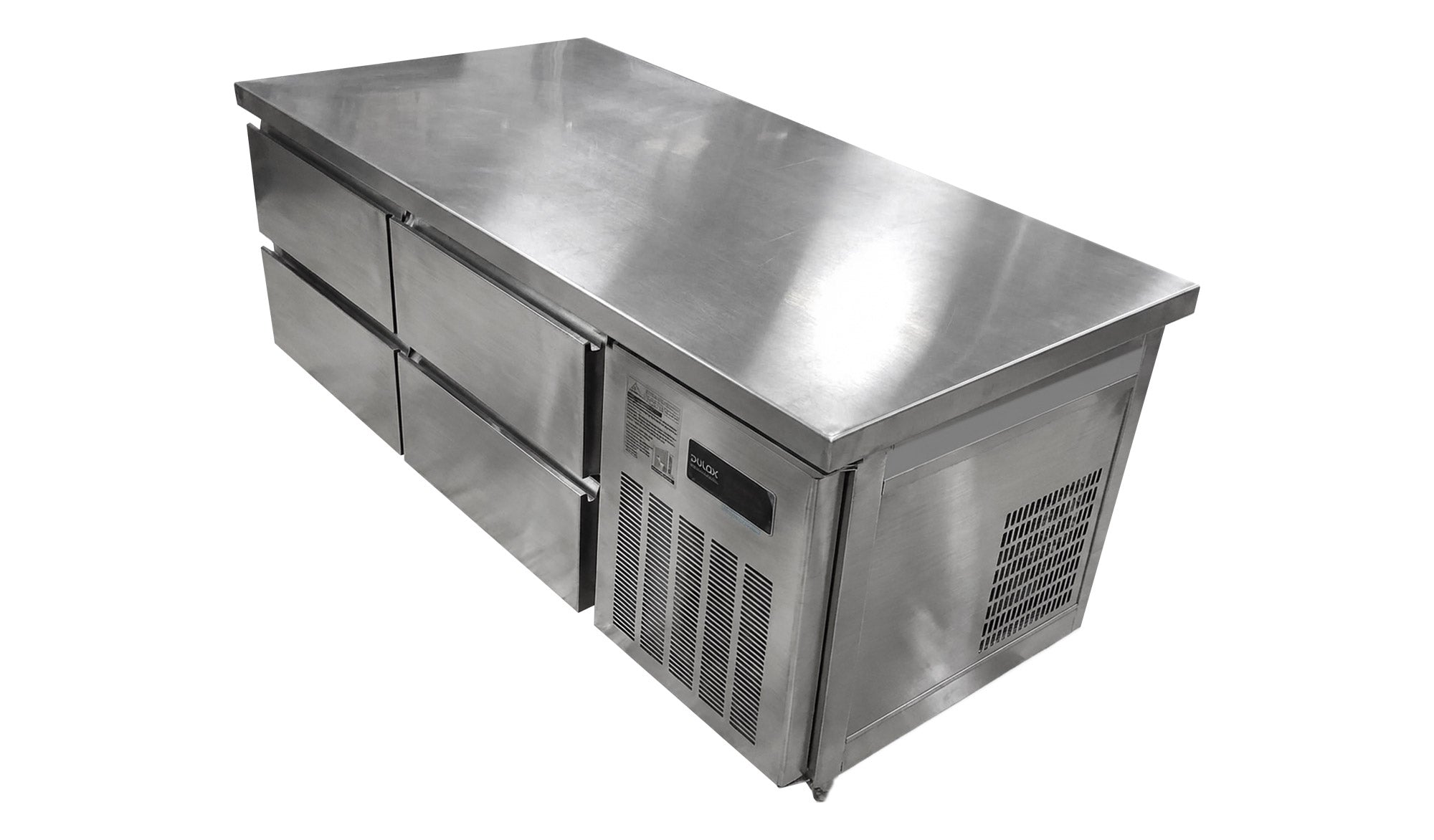 Potencia tu cocina industrial con el mesón refrigerado de 4 cajones: acero inoxidable AISI 304-L, refrigeración de 0° a +5 °C y una altura ideal para colocar freidoras, planchas u otros equipos de sobremesa. Diseño robusto y funcional para facilitar la producción y mantener todos tus ingredientes siempre frescos y al alcance.