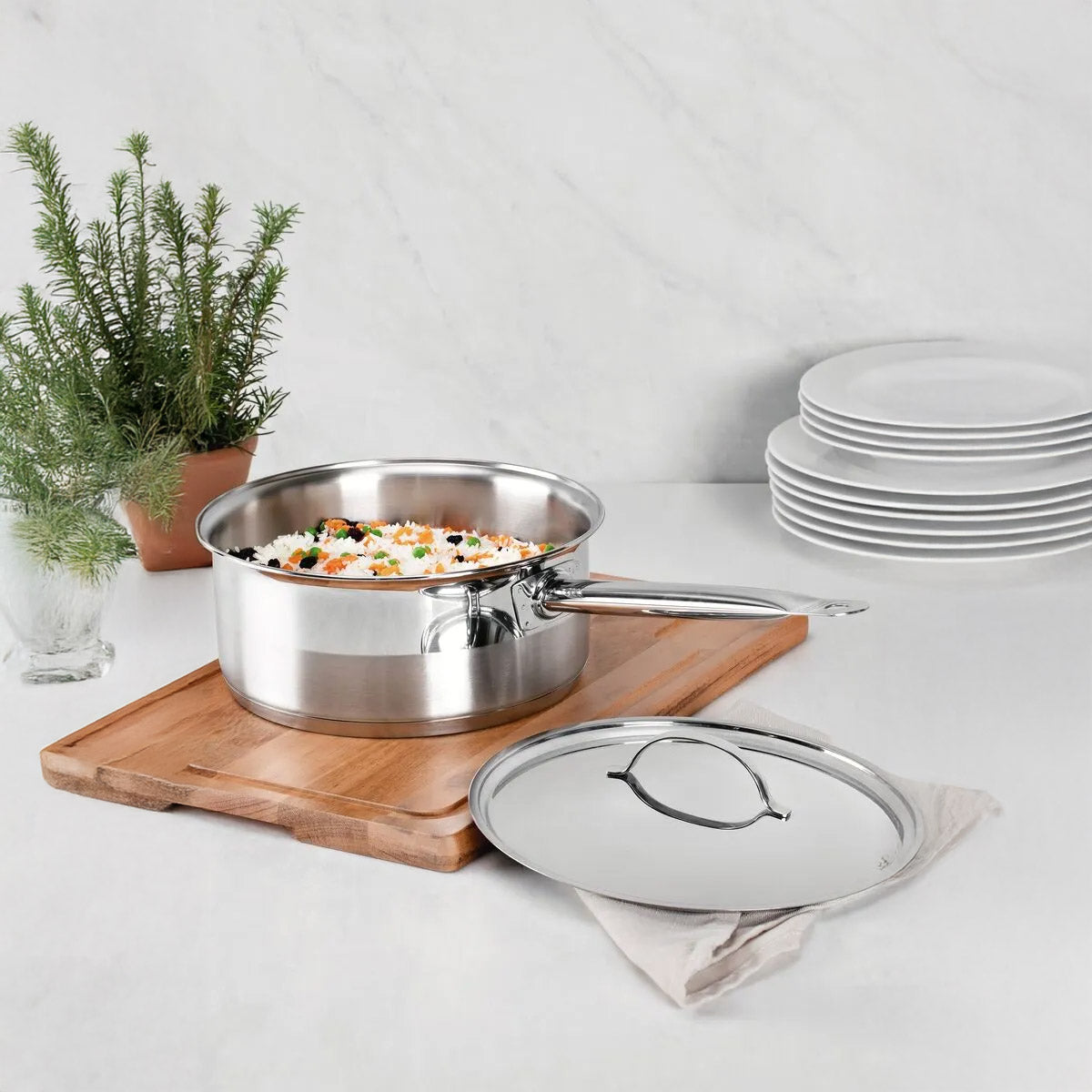 Transforma tu cocina con la olla Tramontina Profesional de 24 cm y 4,7 L, hecha de acero inoxidable con fondo triple (acero + aluminio + acero) que distribuye el calor de forma uniforme para una cocción rápida y eficiente. Ideal para uso diario, tanto en cocinas profesionales como caseras.