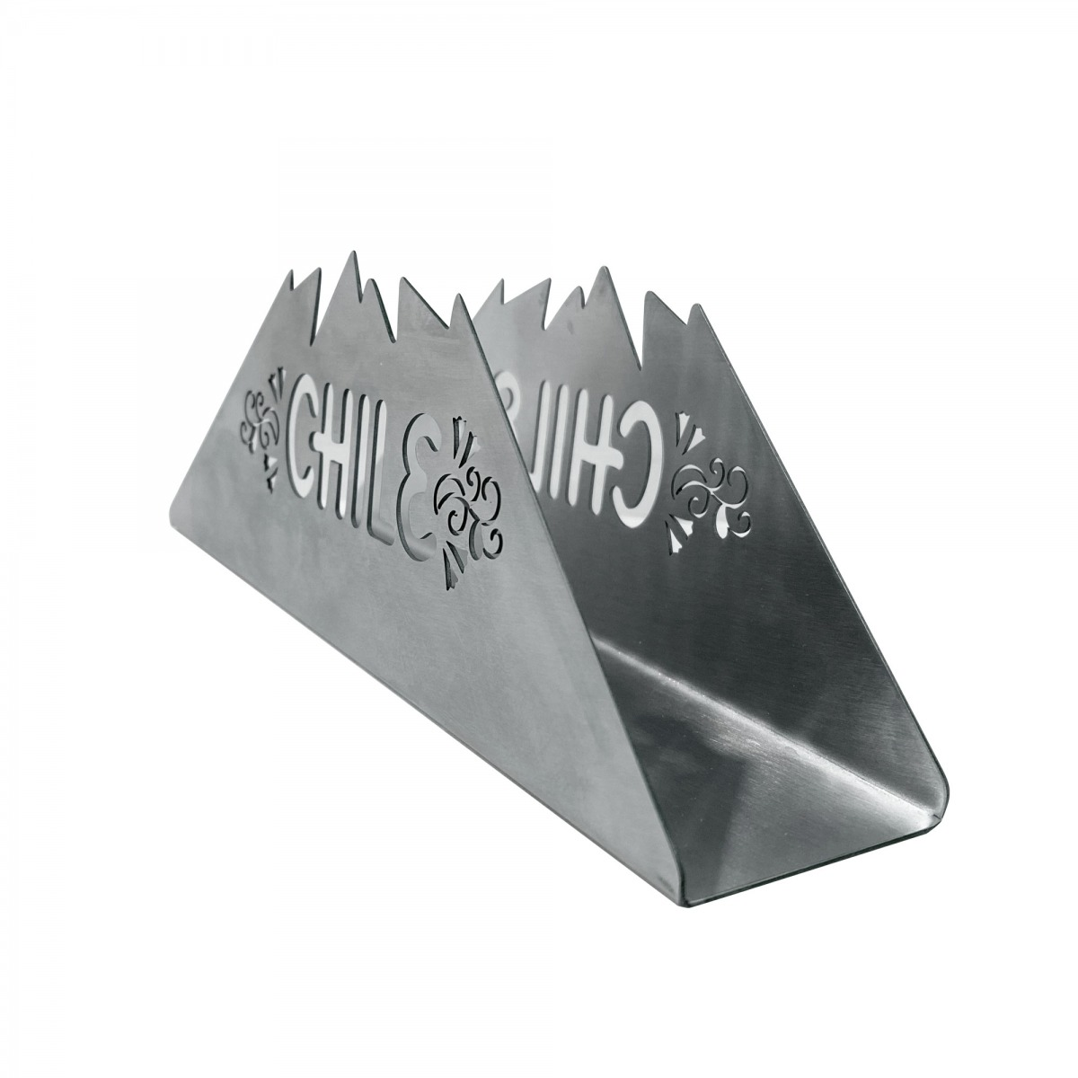 Fabricado en acero inoxidable AISI 304-L, este servilletero destaca por su diseño y durabilidad, garantizando un producto que te acompañará por años.