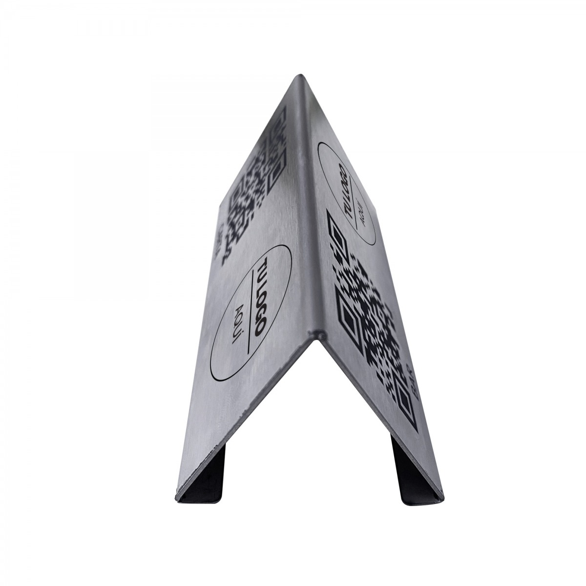 Transforma la experiencia de tus clientes con nuestro exclusivo Table Tent personalizado. Exhibe el QR de tu carta con la sofisticación y resistencia del acero inoxidable.