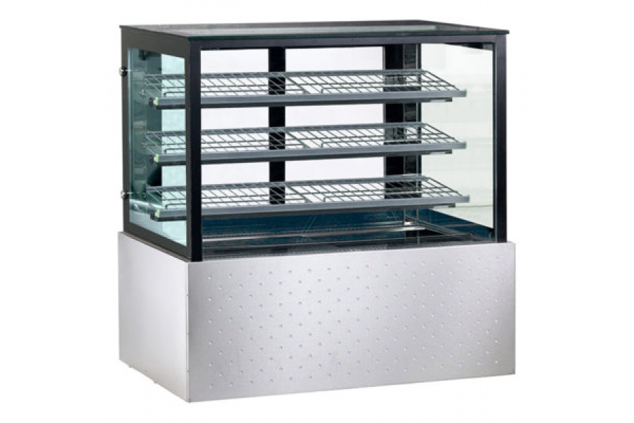 VITRINA PASTELERA REFRIGERADA DE 900MM DE LARGO X 700MM DE ANCHO X 1250MM DE ALTO. 4 NIVELES, TEMPERATURA DE TRABAJO DE 2-8°C, VOLUMEN 400L, TENSIÓN DE TRABAJO 220V/50HZ, POTENCIA 0,83KW , REFRIGERANTE R134A Y LUZ LED BLANCA. FABRICADO ÍNTEGRAMENTE EN ACERO INOXIDABLE CALIDAD AISI 304-L. MEDIDAS EMPAQUE 950X770X1520MM. PESO NETO 219KG.